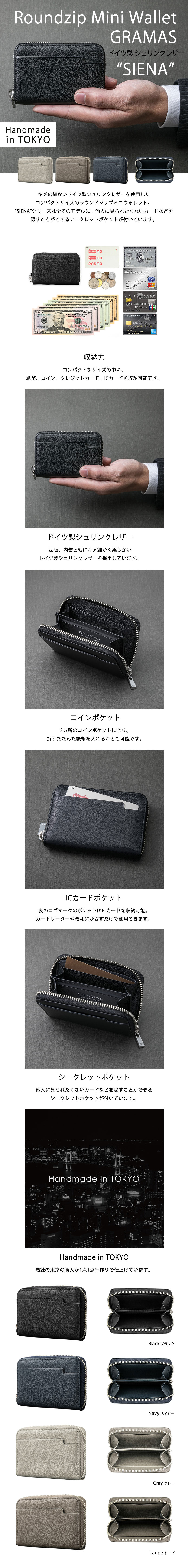 『GRAMAS "SIENA" Roundzip Mini Wallet』 財布 本革 シュリンクレザー 日本製 ファスナー