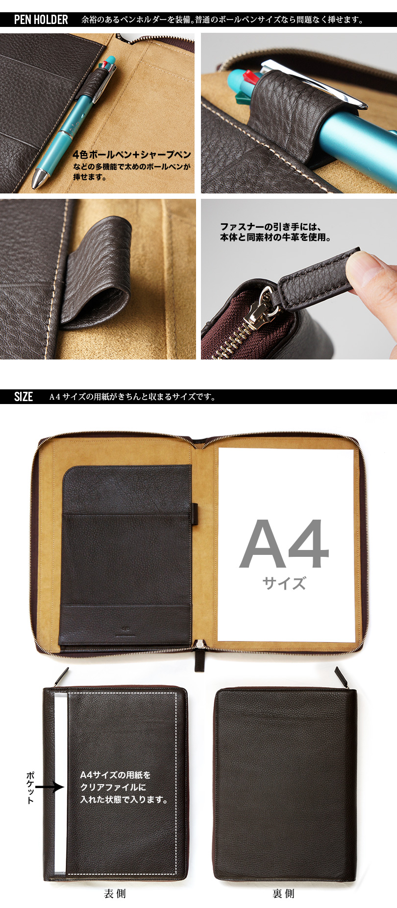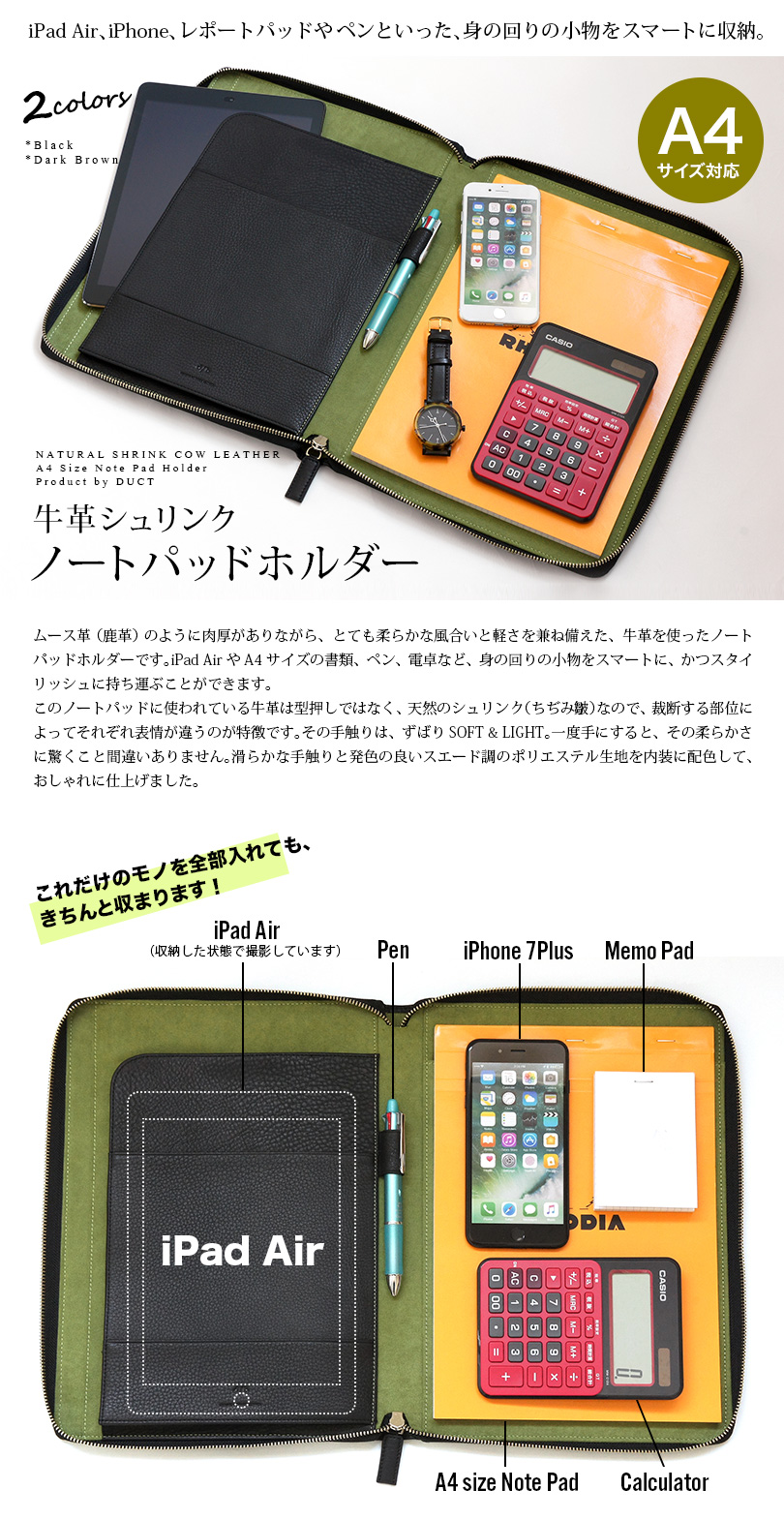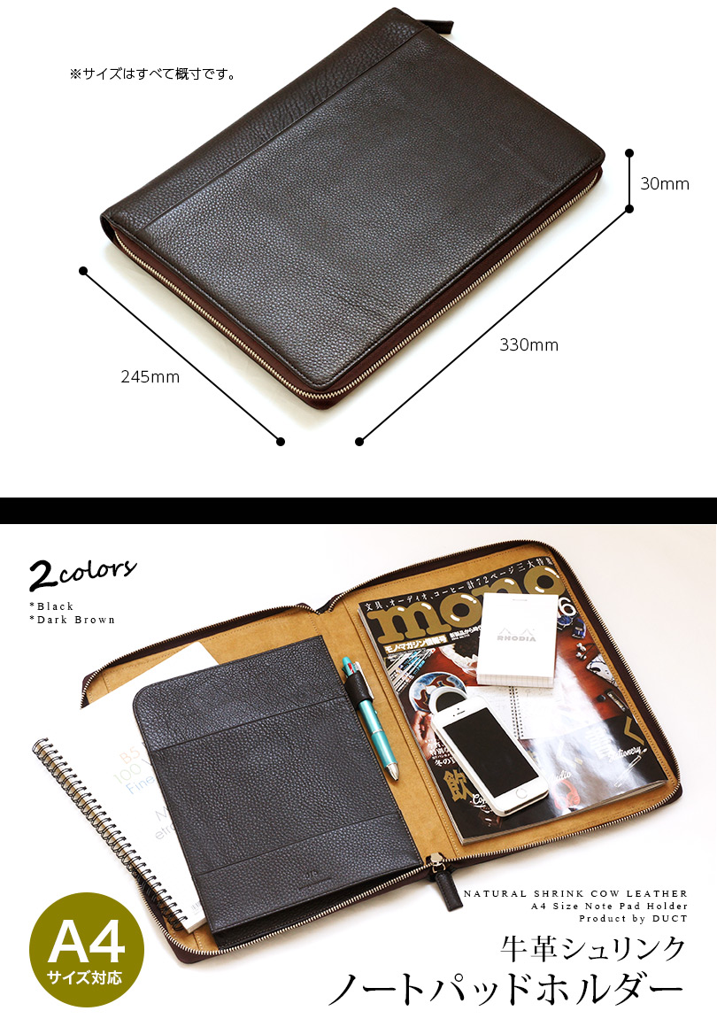 『DUCT 牛革 ノートパッドホルダー NP-640』 本革 シュリンクレザー ノートカバー A4 ファスナー