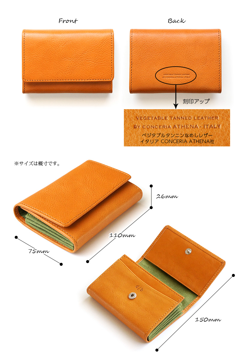 ■イタリア S・CROCE地方の老舗タンナーCONCERIA ATHENA社の最高級バケッタレザーを使った、ナチュラルなカードケース。
