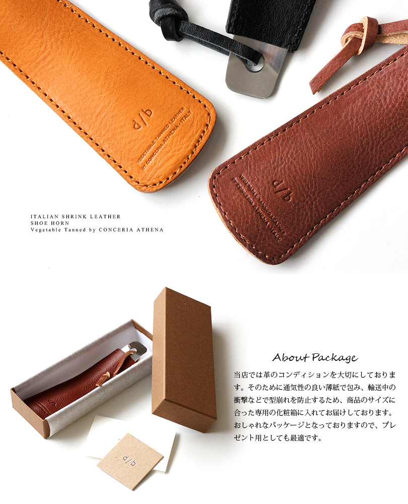 ■当店では革のコンディションを大切にしております。そのために通気性の良い薄紙で包み、輸送中の衝撃などで型崩れを防止するため、商品のサイズに合った専用の化粧箱に入れてお届けしております。おしゃれなパッケージとなっておりますので、プレゼント用としても最適です。