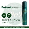 フッ化炭素樹脂、ビーワックス、ラノリンを加えたブレンドオイルを含む防水スプレーです。フッ化炭素樹脂が皮革繊維に深く浸透して防水効果を与えると同時に、ビーワックスとラノリンが皮革にツヤとしなやかさを与え、美しい風合いを維持します。ツヤのあるスムースレザーやコードバンに最適です。