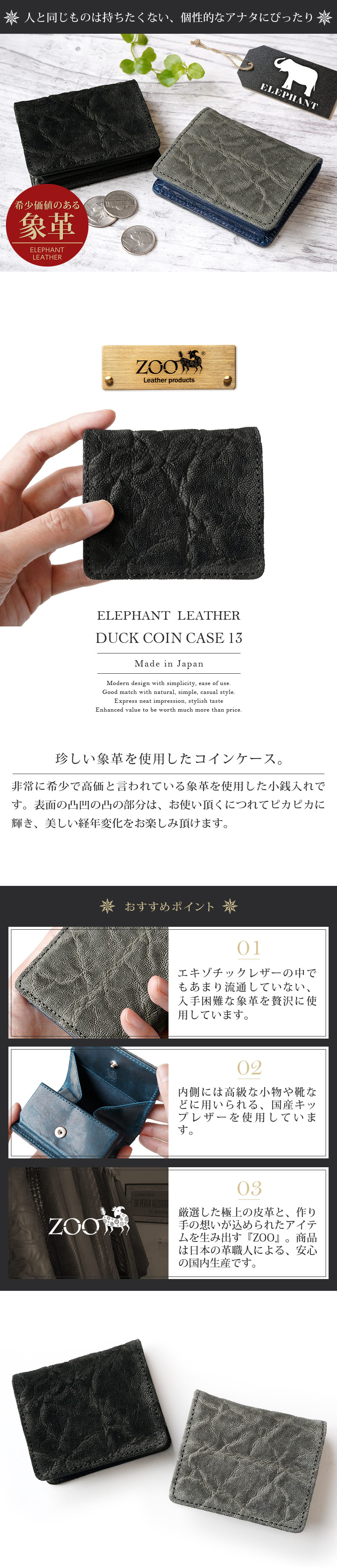 【象革】コインケース ボックス型 DUCK COIN CASE 13 本革 ZOO 日本製