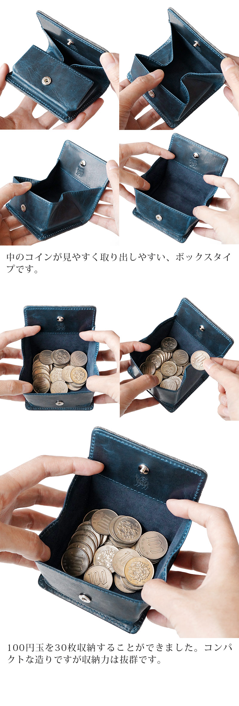 ■中のコインが見やすく取り出しやすいボックスタイプです。