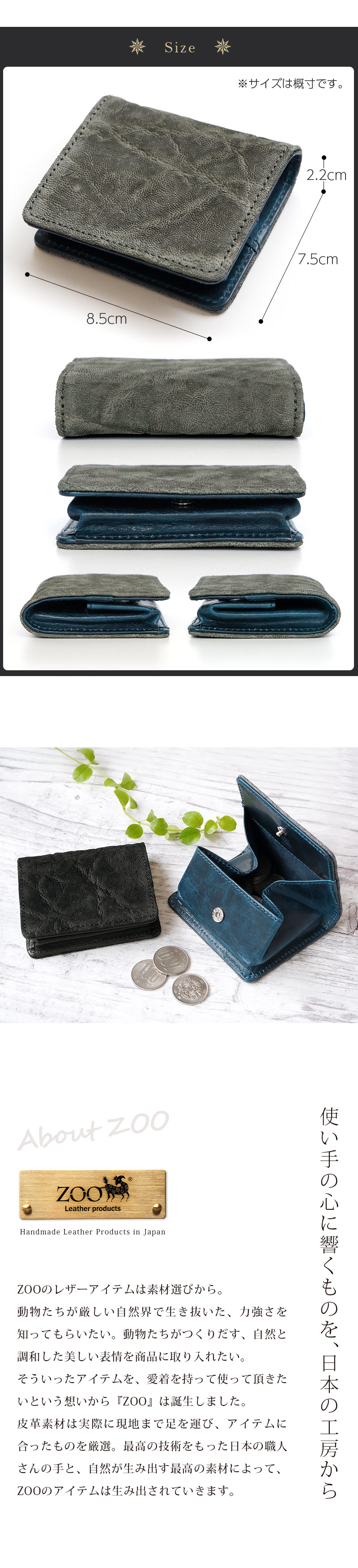 皮革素材は実際に現地まで足を運び、アイテムに合ったものを厳選。最高の技術をもった日本の職人さんの手と、自然が生み出す最高の素材によって、ZOOのアイテムは生み出されていきます。