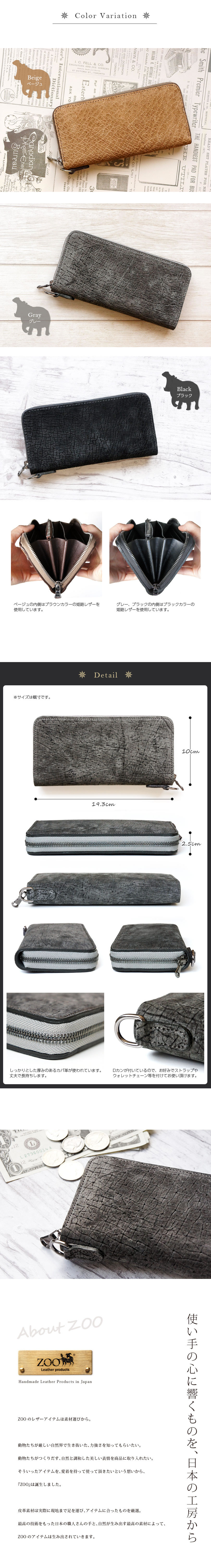 長財布 本革 カバ革 サイフ ロングウォレット 革 レザー ZOO