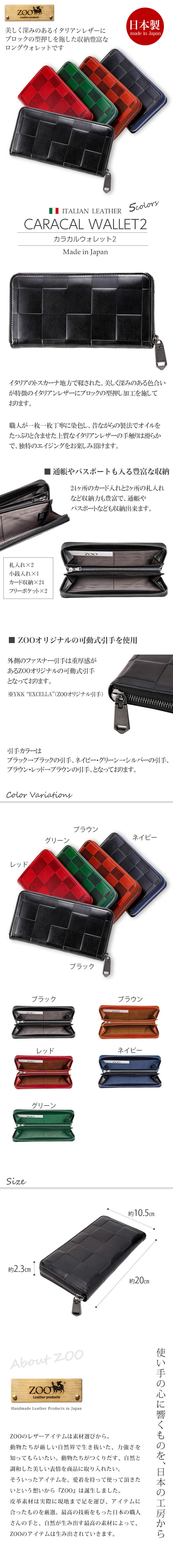【イタリアンレザー】長財布 ラウンドファスナー CARACAL WALLET2 本革 ZOO 日本製