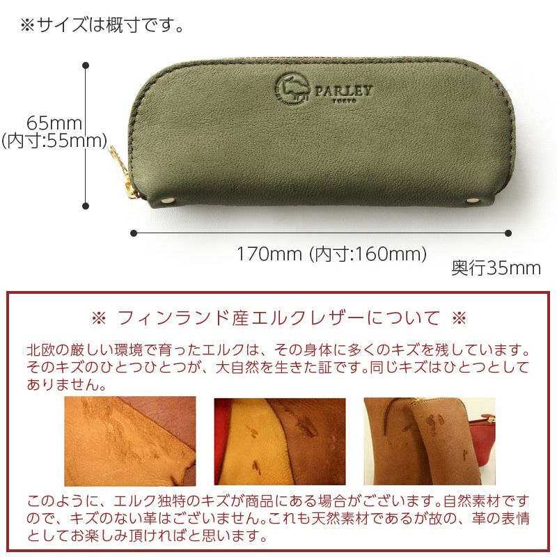 【鹿革】ペンケース / メガネケース ファスナー 本革 パウチ型 筆箱 FE-05 PARLEY パーリィー エルクレザー 日本製