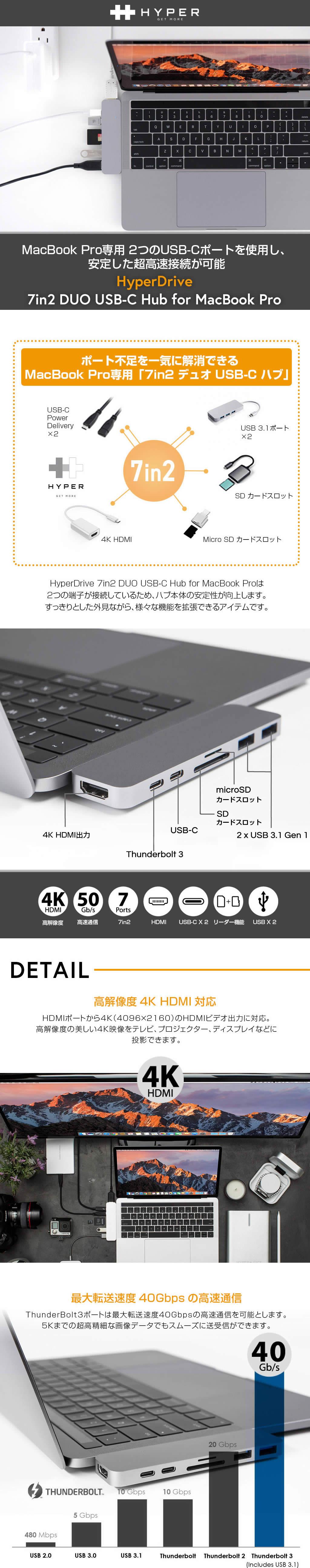 商品名 Hyper Drive 7in2 DUO USB-C Hub for MacBook Pro