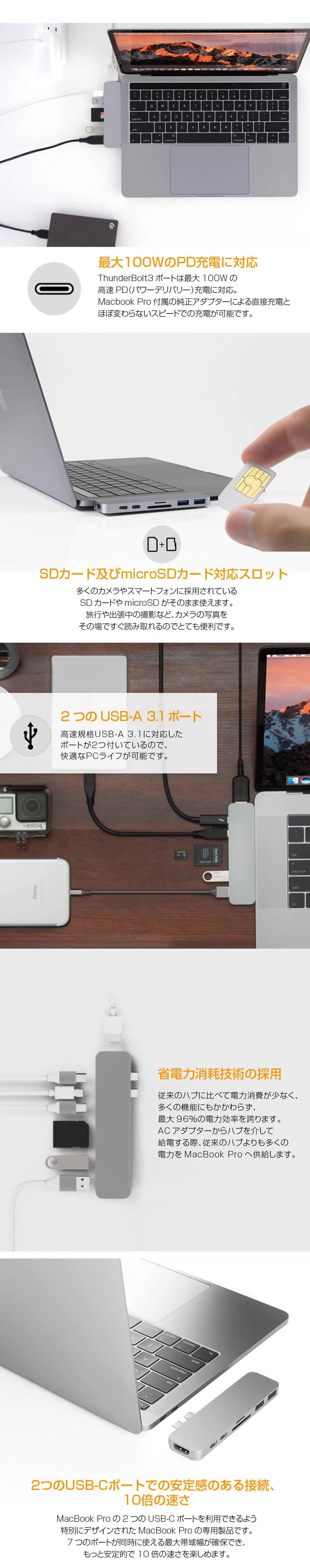 商品特長 ■ MacBook Pro 専用の 7in2 USB-C ハブ です。