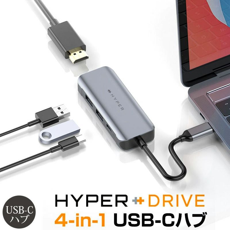 HyperDrive 4-in-1 USB-Cハブ本体、取扱説明書および保証書