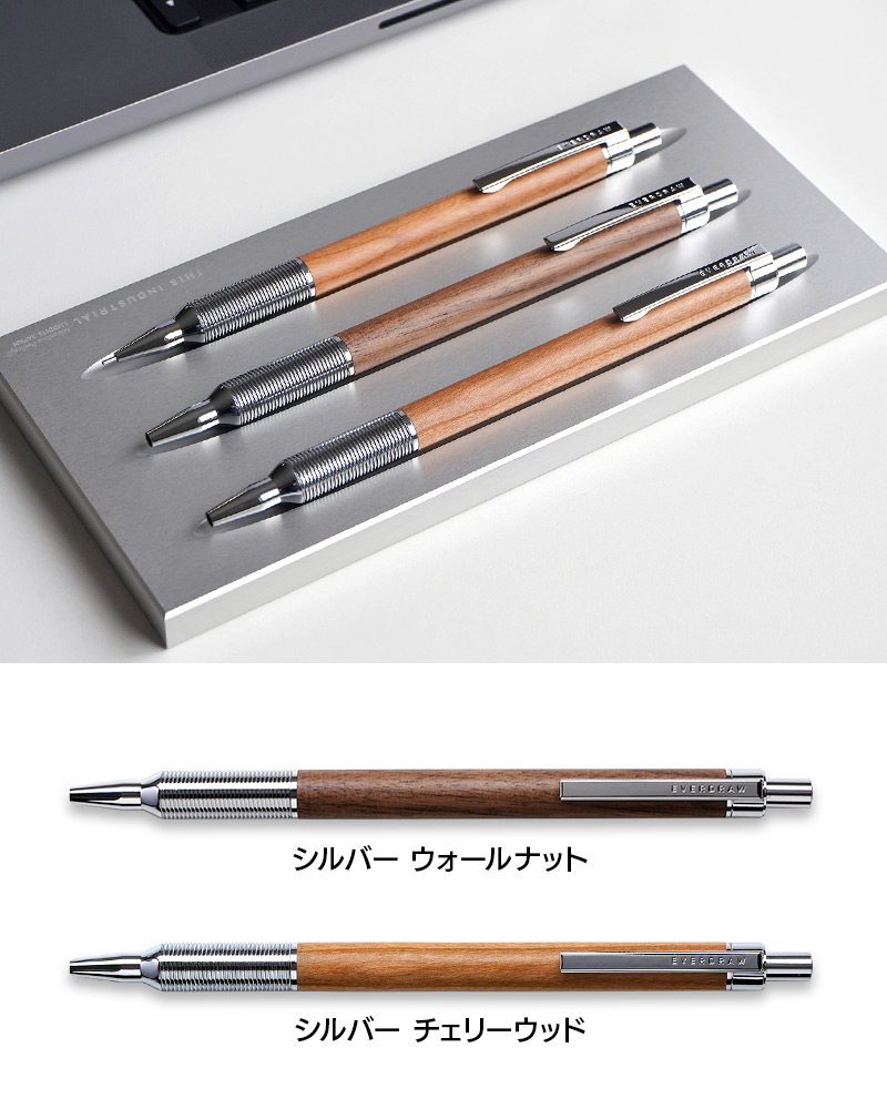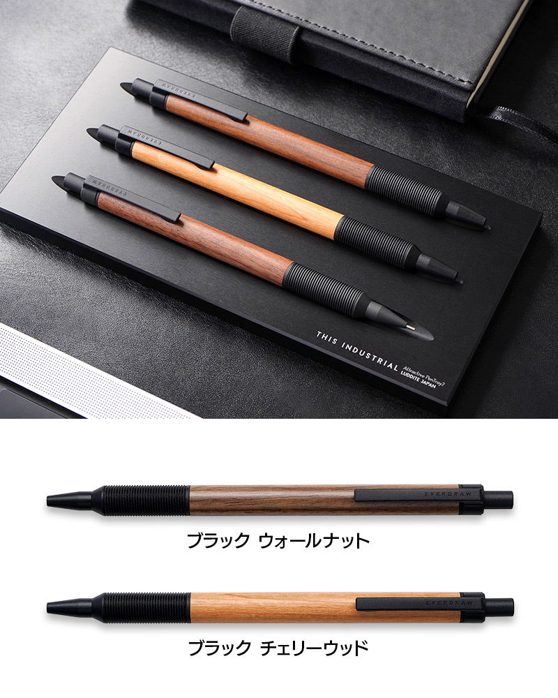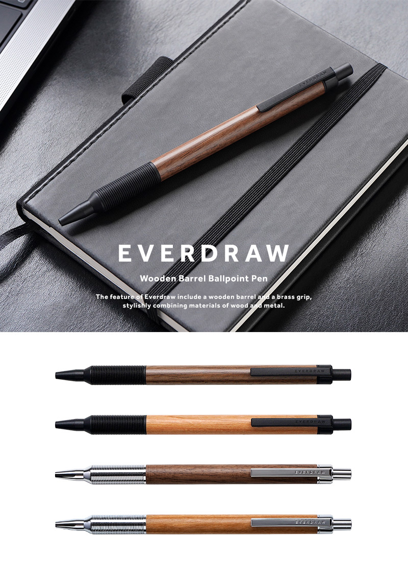 温かみのある木と金属という対照的な素材を組み合わせた”EVERDRAW”。低重心設計で書きやすさも兼ね備えたスタイリッシュなボールペンです。