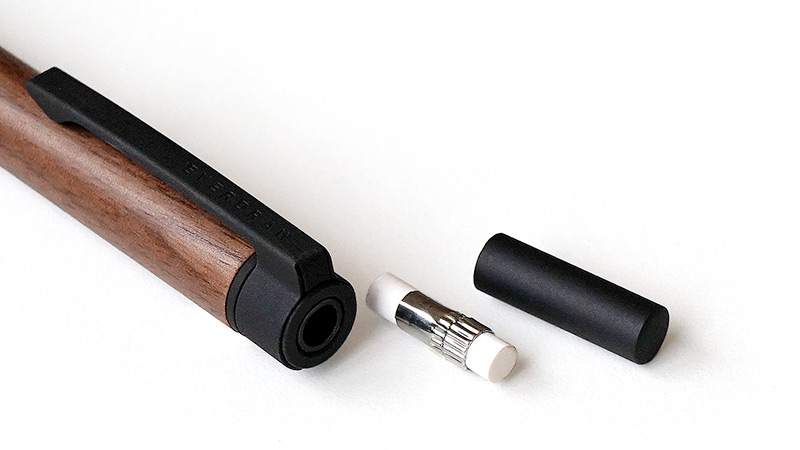 ノック部分の内側には消しゴムが内蔵されています。