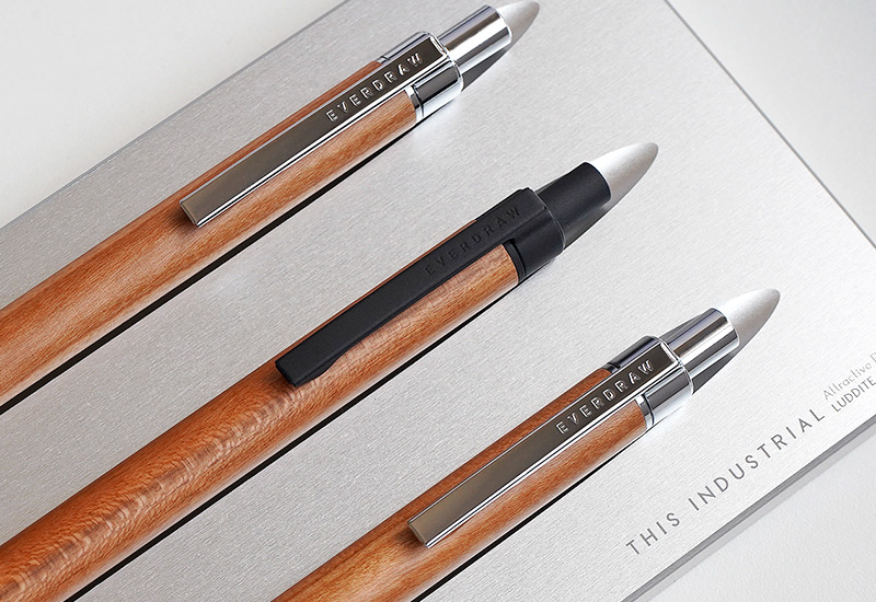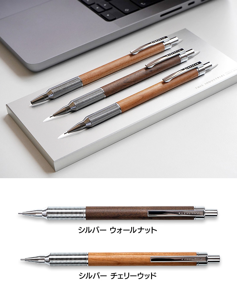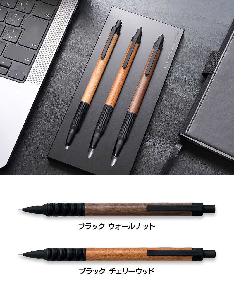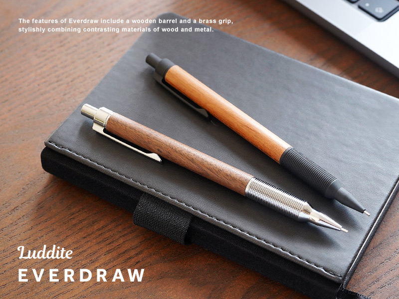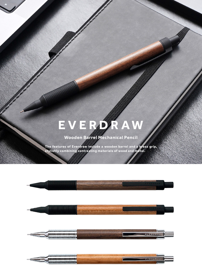 温かみのある木と金属という対照的な素材を組み合わせた”EVERDRAW”。低重心設計で書きやすさも兼ね備えたスタイリッシュなシャープペンシルです。