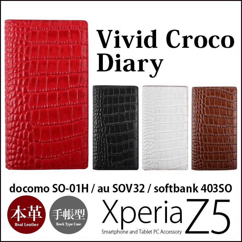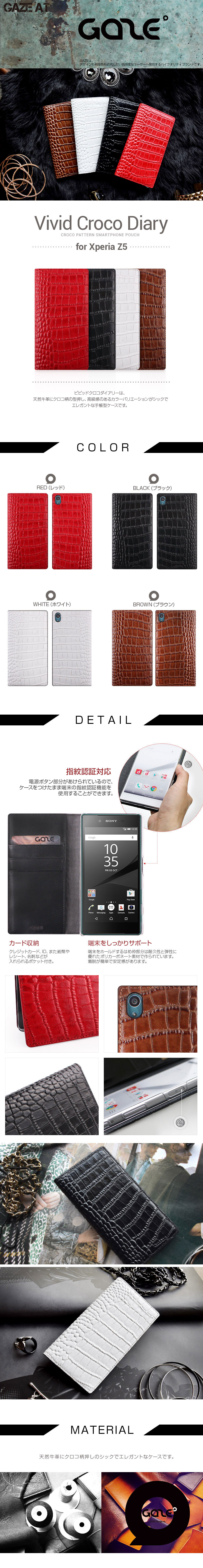 『Gaze Vivid Croco Diary』 Xperia Z5 「docomo SO-01H / au SOV32 / softbank 403SO」 手帳型 本革 レザー ケース