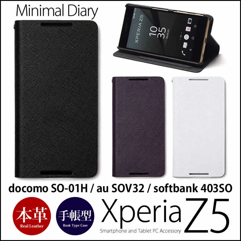 『Zenus Minimal Diary for XperiaZ5』 Xperia Z5 「docomo SO-01H / au SOV32 / softbank 403SO」 手帳型 本革 レザー ケース