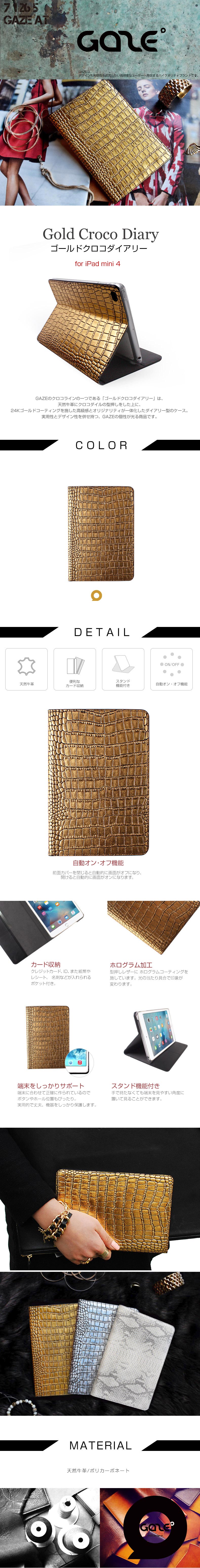 『GAZE Gold Croco Diary for iPad mini4』 iPad mini 4 本革 レザー ケース