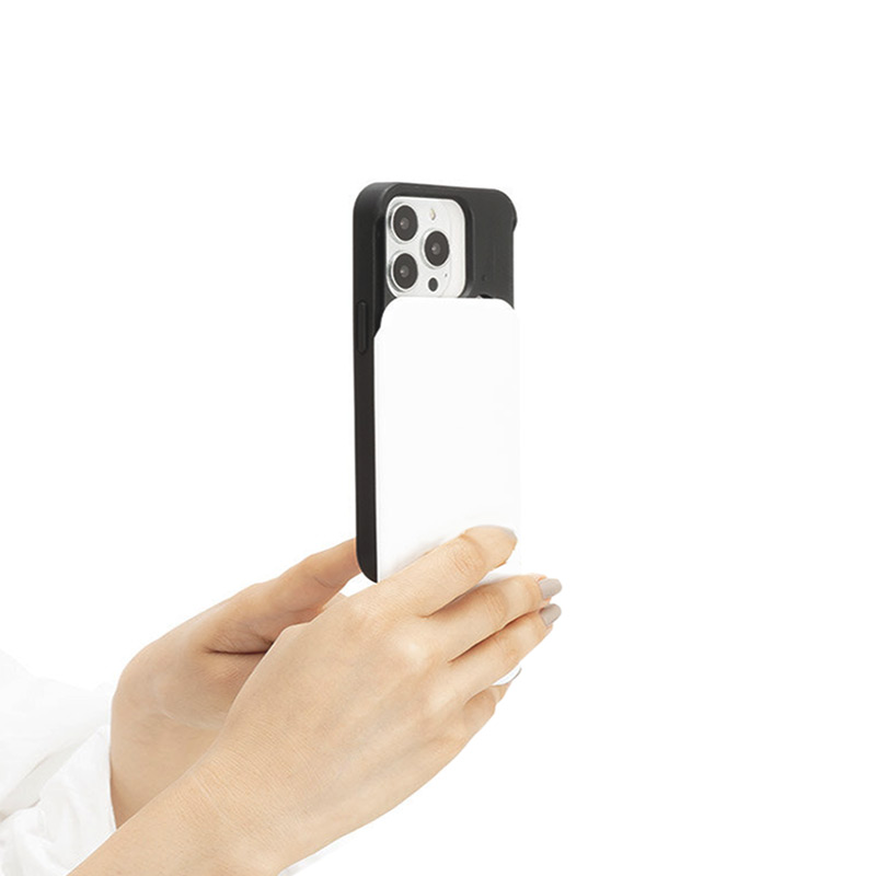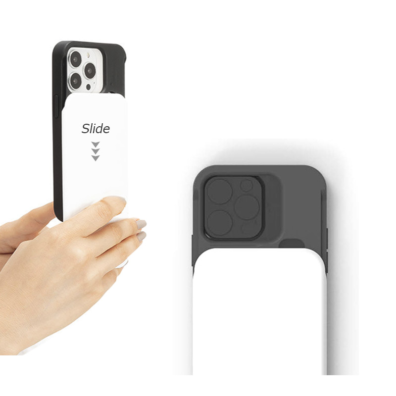 カメラ部分までケースで覆うことで、大きくなったレンズを保護します。カメラを使用する際には、外側のポリカーボネート部分をスライドすればすぐに撮影ができます。またカメラ穴がないため、一体感のあるデザインとなっています。