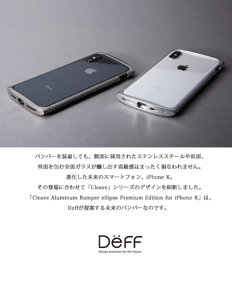■「Cleave Titanium Bumper ellipse Premium Edition for iPhone X」は、Deffの人気バンパー「Cleave」シリーズの新ラインナップです。商品名にある「ellipse」とは楕円のこと。製品は、楕円形状であることをアピールしたシンプルで飽きのこないデザインになっており、ユーザーにベゼルの存在を感じさせないiPhone Xの美しいオールスクリーンディスプレイの邪魔をすることはありません。