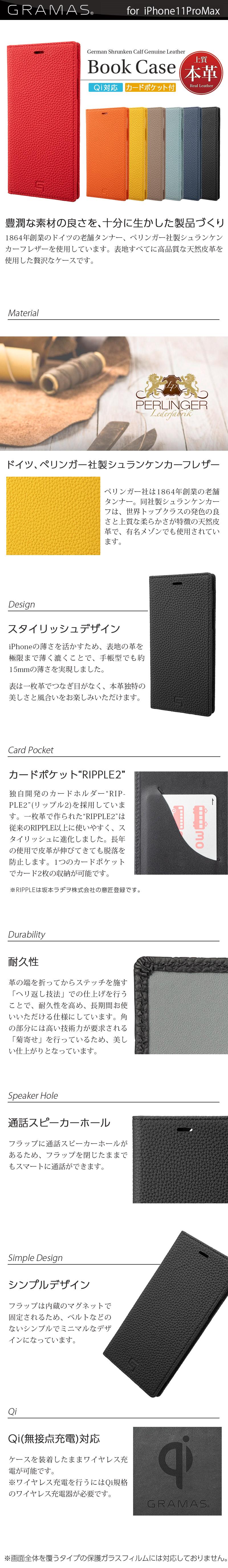 『GRAMAS Shrunken-calf Leather Book Case』 iPhone11ProMax ケース 手帳型 本革 レザー