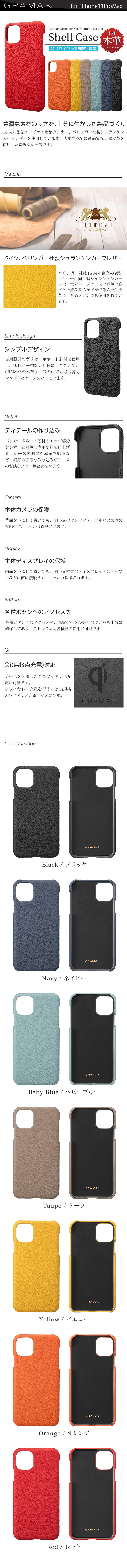 『GRAMAS Shrunken-calf Leather Shell Case』 iPhone 11 Pro Max ケース 本革 レザー