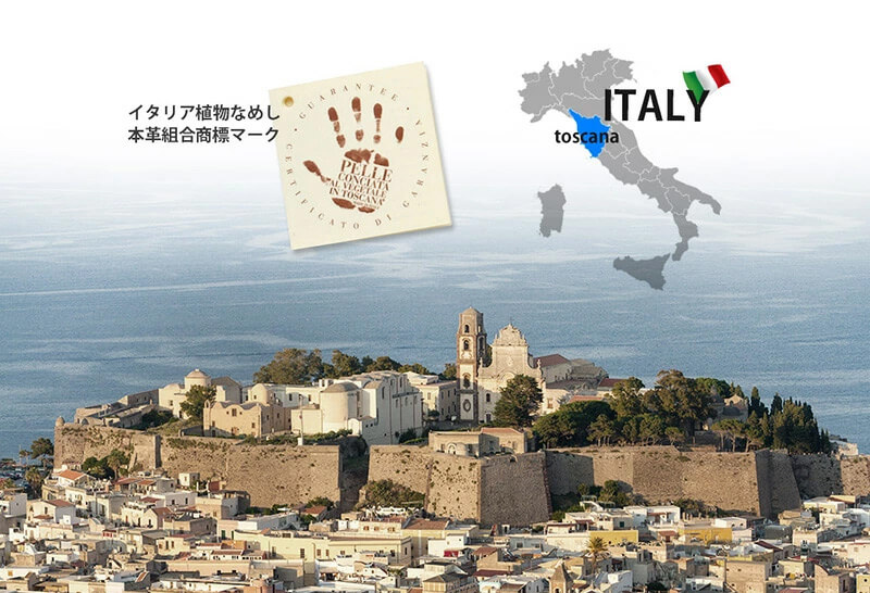イタリアの名タンナー、エルトリア社製のベジタブルタンニンレザー「LIPARI(リパリ)」を贅沢に使用しました。艶のある深い色合いにクロコ型押しが美しく、ショルダー部分の牛革を使用したことで、繊維の密度が高く、耐久性に優れています。