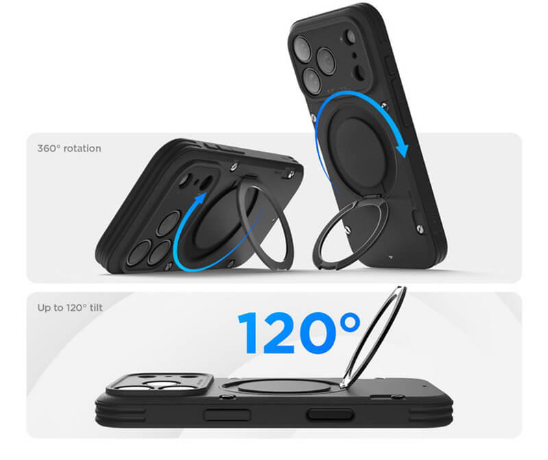 360度の回転と、120度までの角度調節が可能。最適な角度に調節できます。