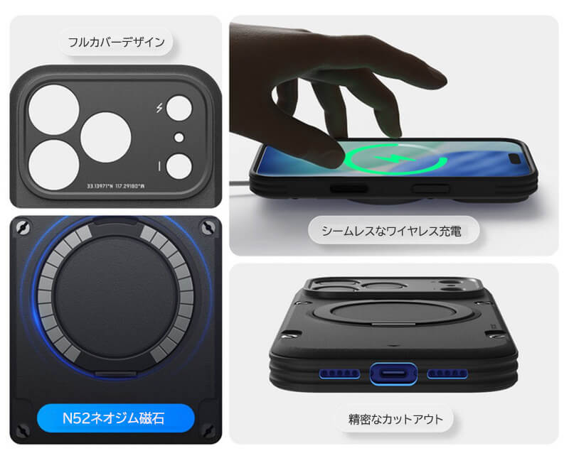 Apple純正MagSafe充電器や対応アクセサリーが付けられ、規格に準じたワイヤレス充電が可能です。