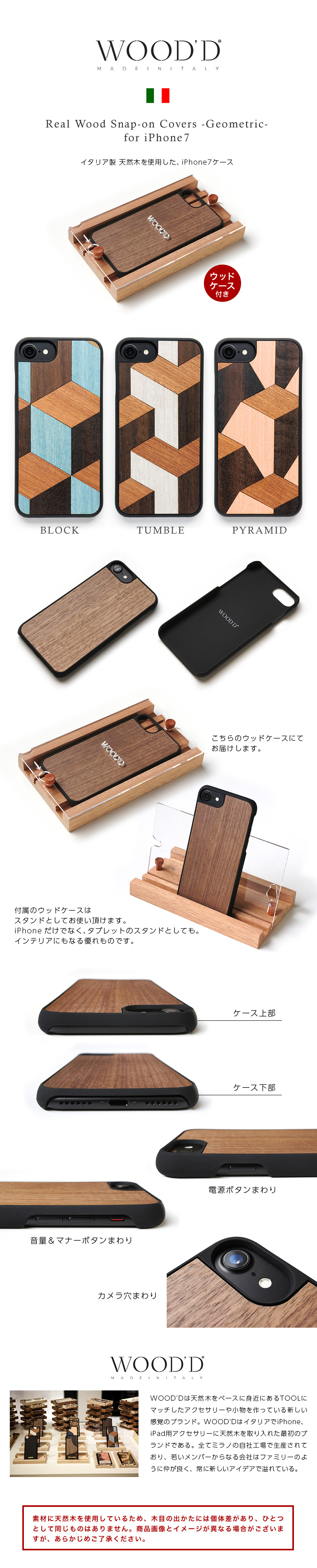 『WOOD'D Real Wood Snap-on Covers GEOMETRIC』 iPhoneSE 第3世代・第2世代 / iPhone8 / iPhone7 ケース 木製