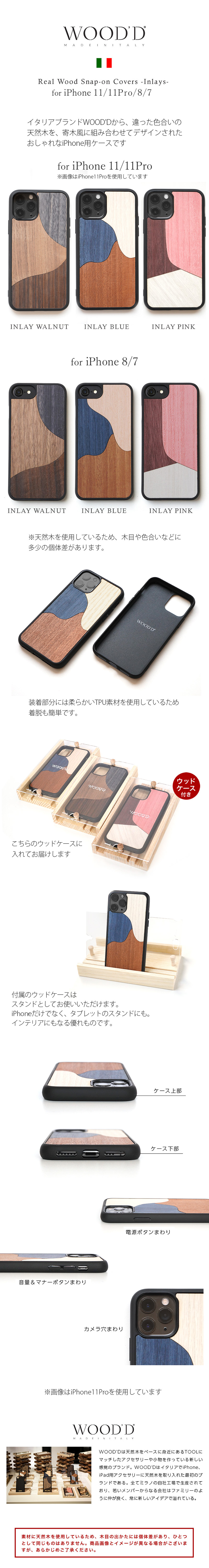 『WOOD'D Real Wood Snap-on Covers INLAYS』 iPhoneSE 第3世代・第2世代 / iPhone11Pro / iPhone8 / iPhone7
