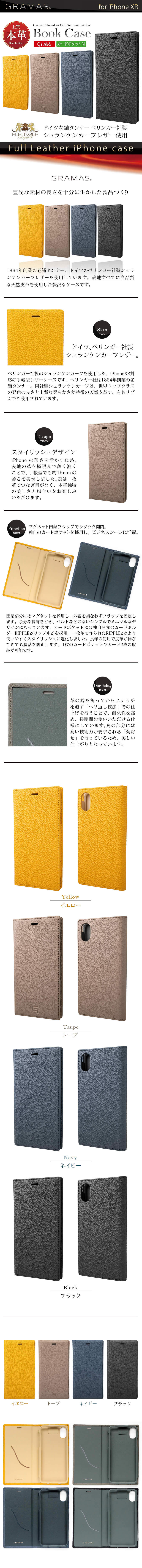 『GRAMAS German Shrunken calf Genuine Leather Book Case』 iPhone XR ケース 本革 シュランケンカーフレザー
