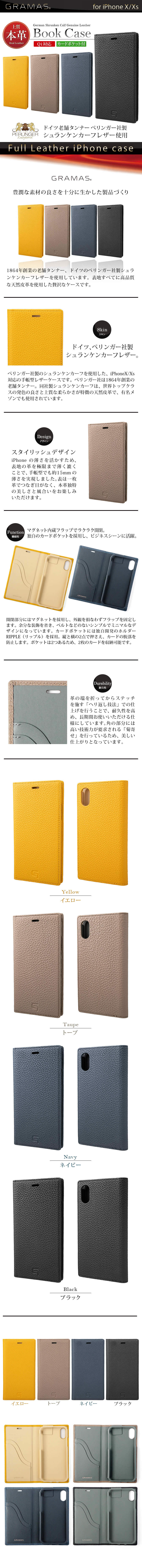 『GRAMAS German Shrunken calf Genuine Leather Book Case』 iPhoneXS / iPhoneX ケース 本革 シュランケンカーフレザー