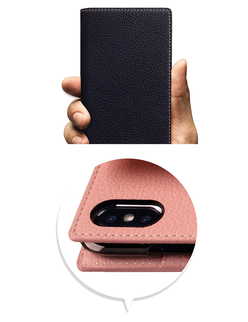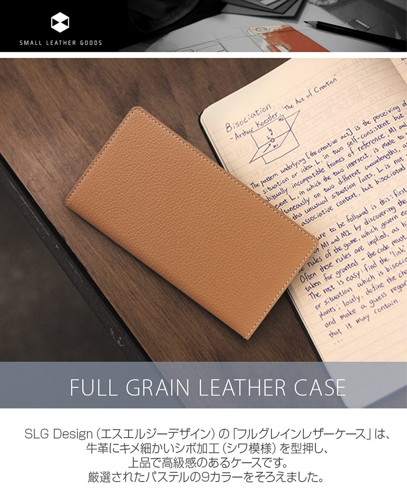 ■ SLG Design(エスエルジーデザイン)の「フルグレインレザーケース」は、牛革にキメ細かいシボ加工(シワ模様)を型押しを施した上品で高級感のあるケースです。