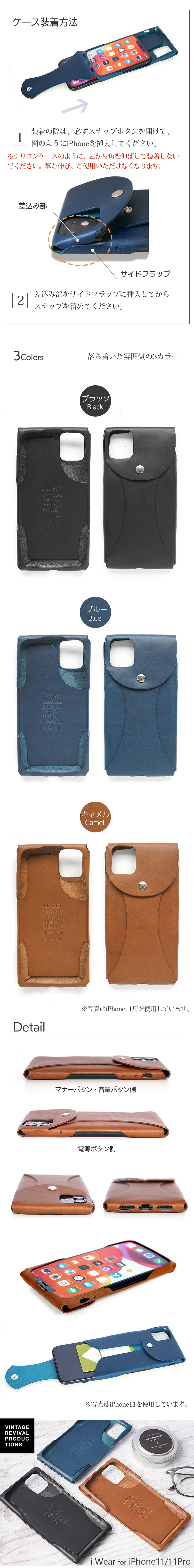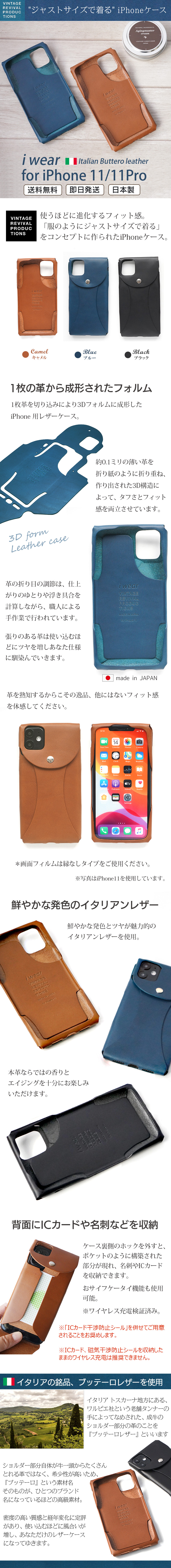 【カード収納あり★イタリアンレザー】iPhone11Pro / iPhone11 ケース 背面 本革 シェル i Wear Vintage Revival Productions 日本製