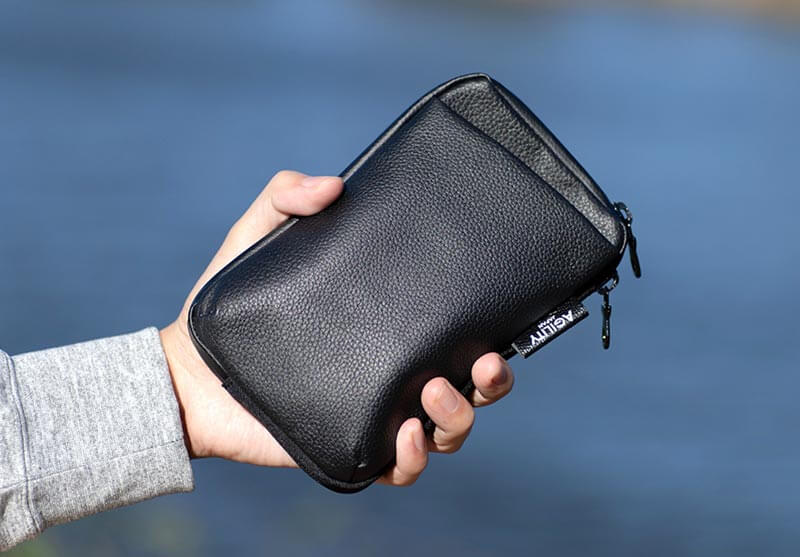 ■ 『パークポシェット』は、外遊びを楽しむ大人の手ぶらミニショルダー です。「撥水レザー×撥水ポリエステル」を使用、雨に強い特別仕様です。