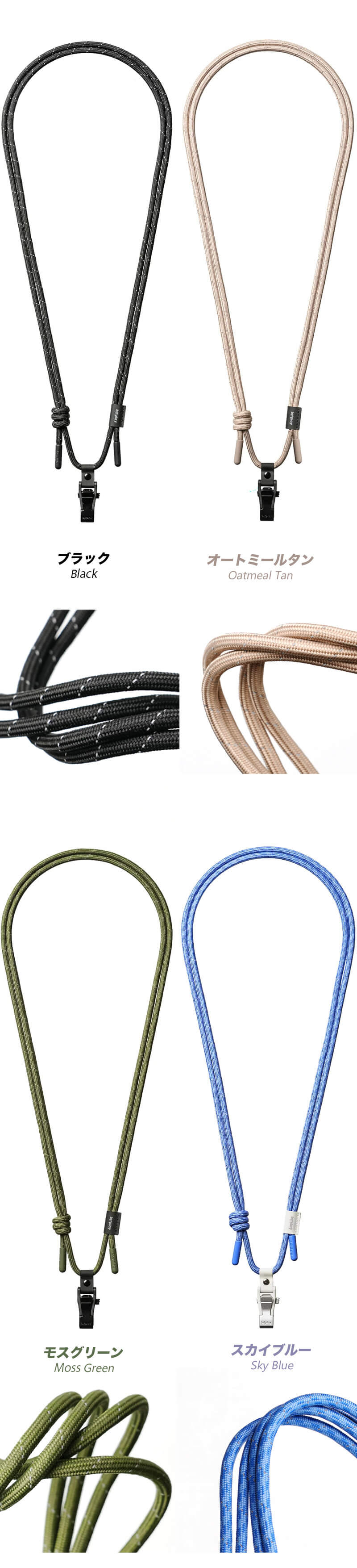 スマートフォン等のハンズフリーでの使用に便利なネックストラップ。