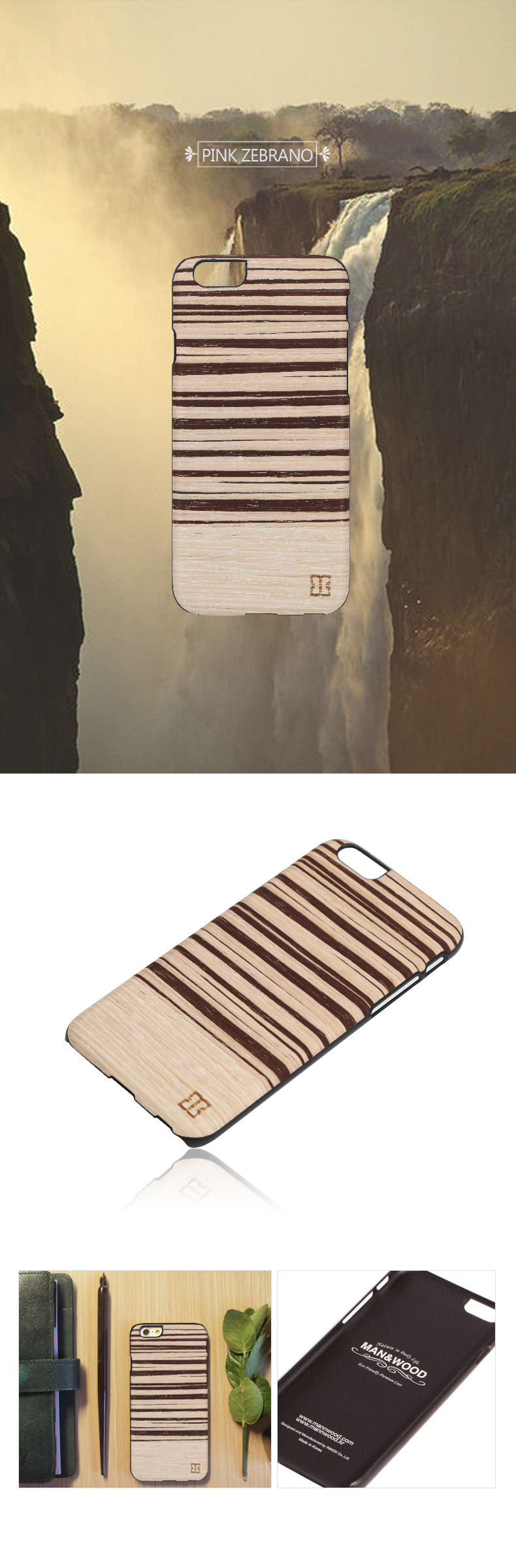 こだわりの天然木使用(リコンポースドゼブラ、リコンポースドオーク)。ゼブラ模様が個性的ながら味わい深いシンプルな木目のスマホカバー。