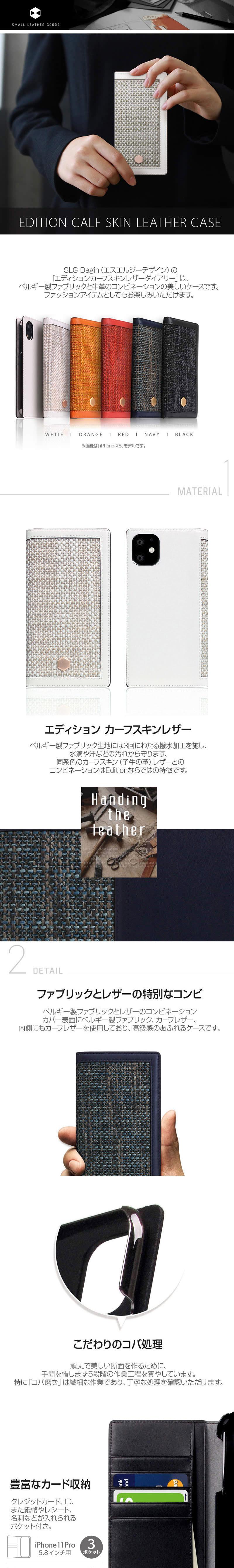 『SLG Design Edition Calf Skin Leather Diary』 iPhone 11 ケース 手帳型 本革 レザー