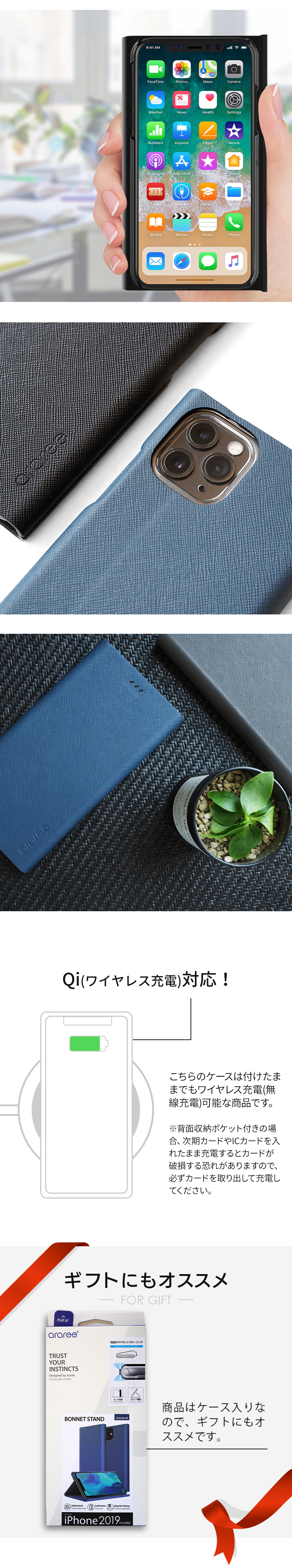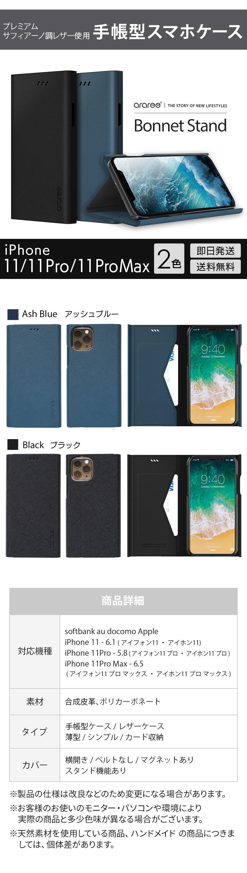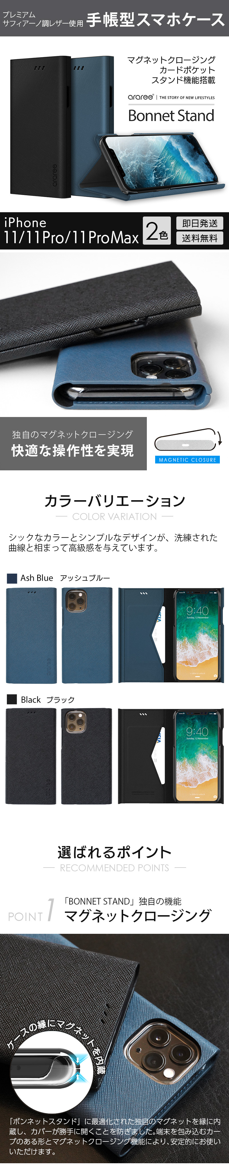 『araree Bonnet Stand』 iPhone 11 / 11Pro / 11 Pro Max ケース 手帳型 レザー