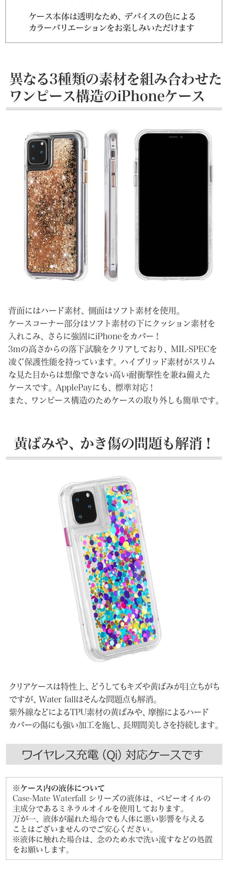 【耐衝撃】Case-Mate Waterfall Gold / Confetti iPhone11Pro / iPhone11ProMax ケース 背面 クリア