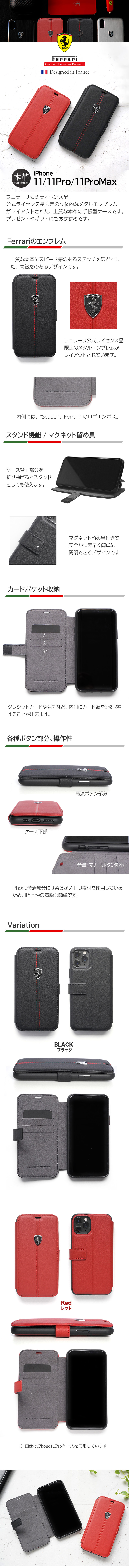フェラーリ公式ライセンスのiPhone11 Pro、iPhone11、iPhone11 Pro Max対応の手帳型ケースです。