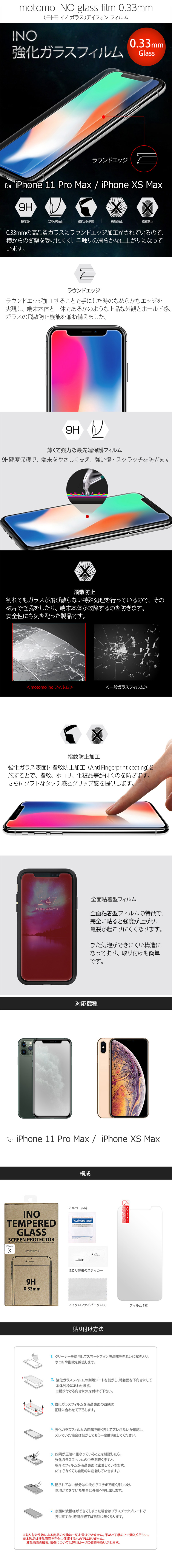 『motomo INO glass film 0.33mm』 iPhone 11 Pro Max / XS Max 強化ガラスフィルム