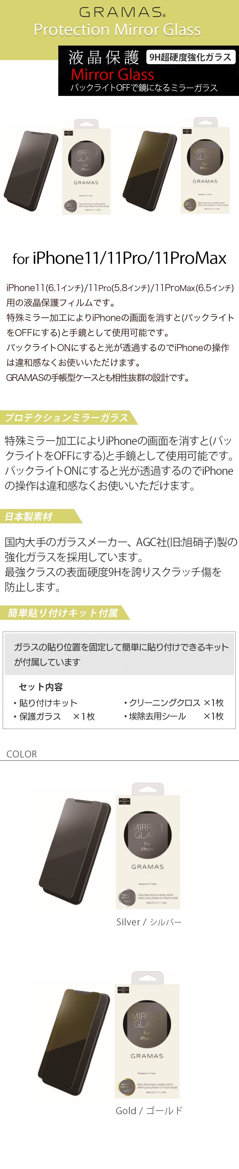 『GRAMAS COLORS Protection Glass Mirror Glass ミラーガラス』 iPhone 11 / 11Pro / 11 Pro Max ガラスフィルム