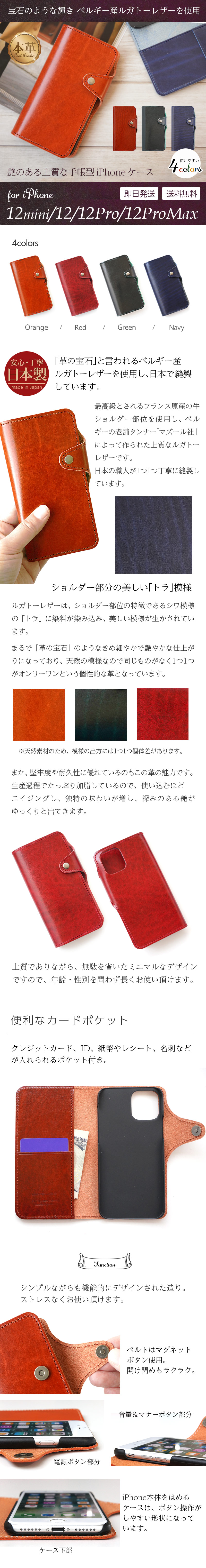商品特長 ■ iPhone12/12mini/12Pro/12ProMax 専用の 手帳型 ケース です。