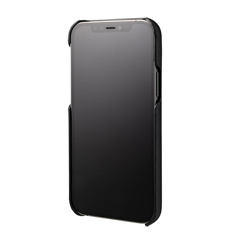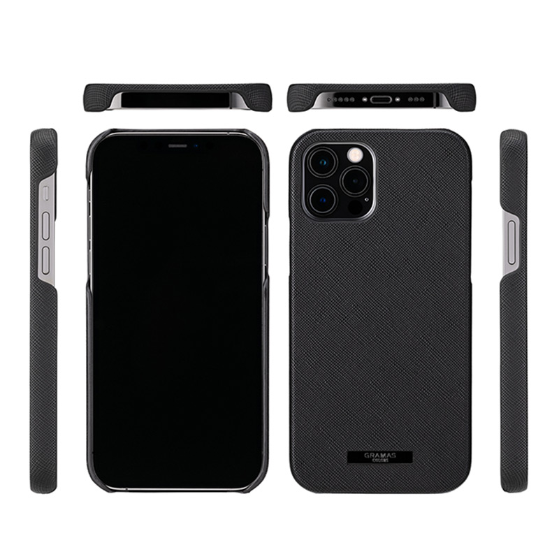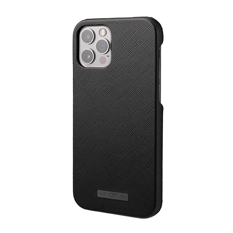 汚れや傷に強いサフィアーノ調の合成皮革を採用したシェル型iPhone用ケースです。シックな色合いとミニマルなデザインで、ビジネスシーンでも通用する逸品に仕上げました。