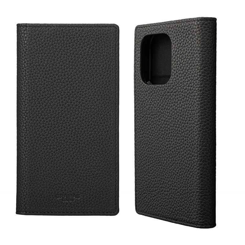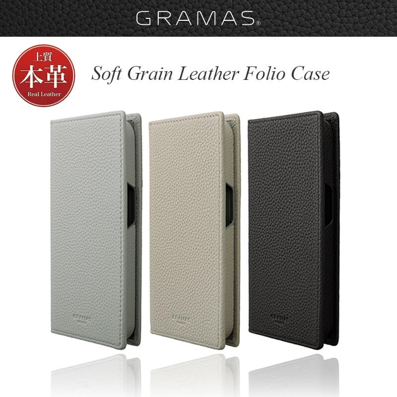 手のひらにフィットするシボ(凹凸模様)と柔らかさが特徴のソフトグレインレザーを使用した、手帳型レザーケースです。シンプルながらも高級感のある風合いで、スタイリングやシーンを選びません。