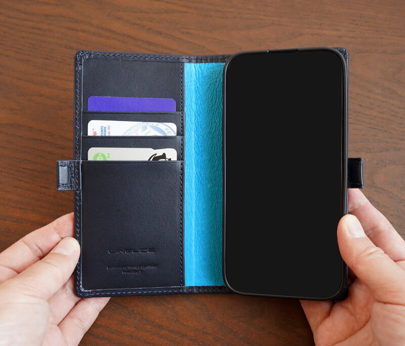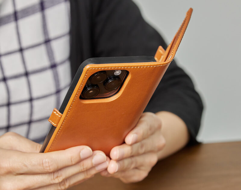 滑らかな手触りと光沢を持つ、イタリアンレザーを使ったiPhoneケースです。