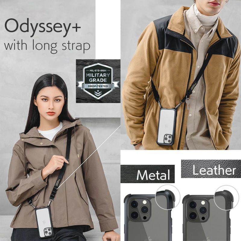 ロングストラップがついており、ポシェットのように斜めにかけることでファッショナブルに活用できるアイテムです。ハンズフリーでiPhoneを持ち歩く事ができ便利。ストラップ部分は柔らかく、耐久性にも優れた8打ちロープを使用しています。また、長さ調節用の金属スライダーが装着されているので、肩かけや首かけなど、使用用途に応じて自由に長さを調節する事ができます。