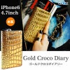 商品名 iPhone6 手帳型 本革 レザー ケース Gold Croco Diary