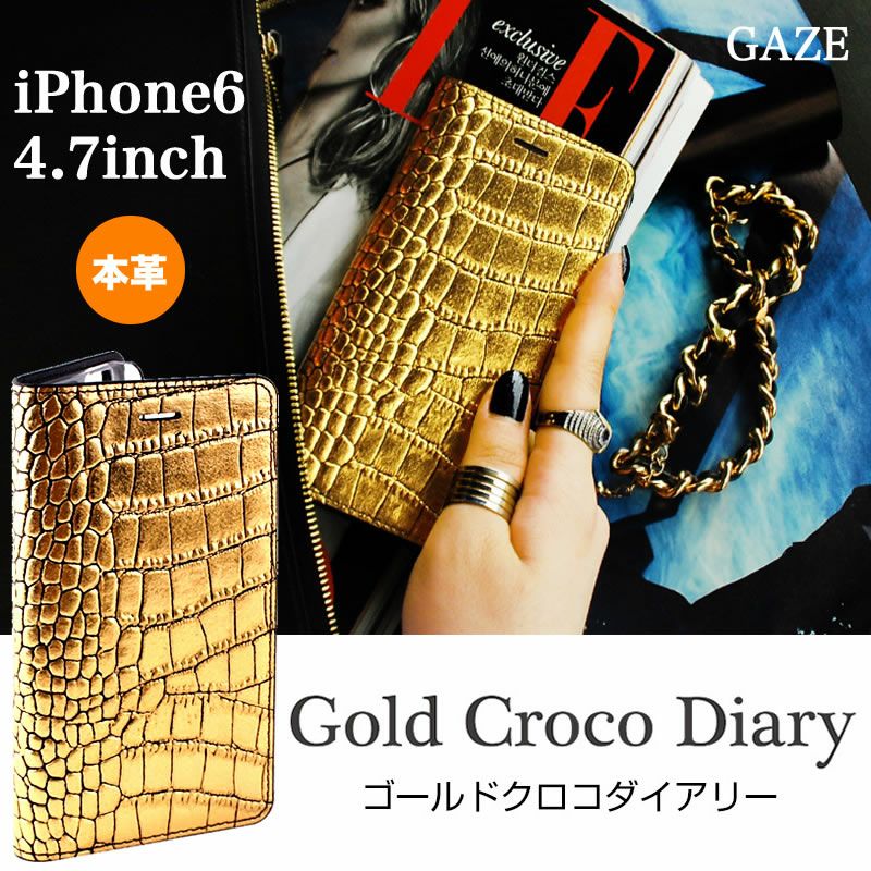 『GAZE Gold Croco Diary』 iPhone6s / iPhone6 手帳型 本革 レザー ケース
