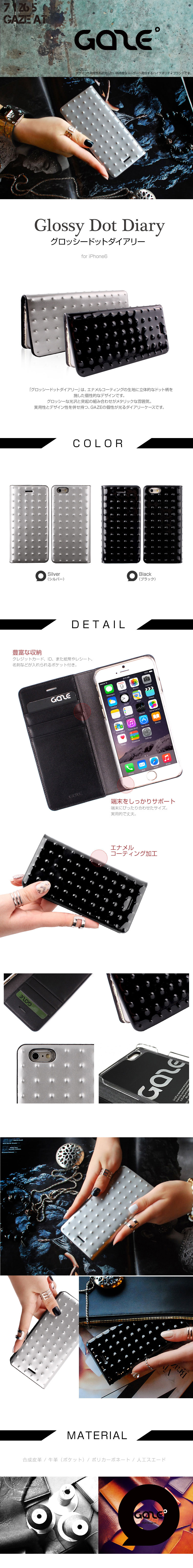 『GAZE Glossy Dot Diary』 iPhone6s / iPhone6 手帳型 エナメル レザー ケース
